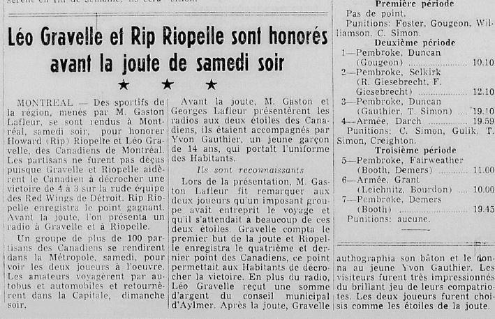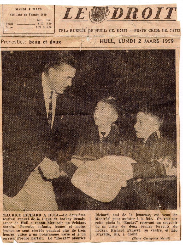 Maurice Richard à Hull - Article Le Droit 2 mars 1959
