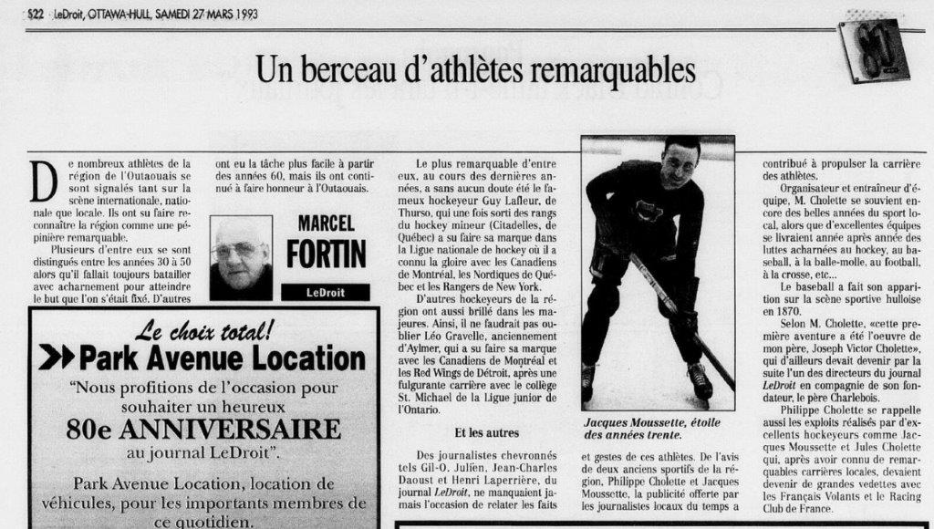 Un berceau d'athlètes remarquables - Article de lMarcel Fortin du Journal Le Droit le 27 mars 1993