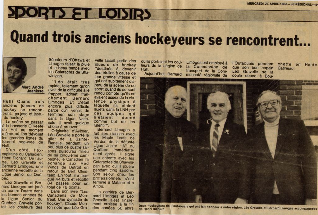Quand trois anciens hockeyeurs se rencontrent - Le Regional 27 avril 1983